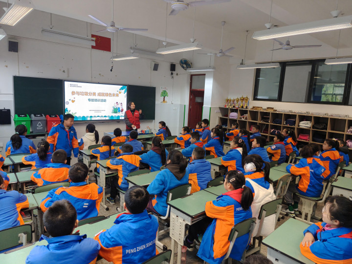 下午,垃圾分类宣传活动走进彭镇小学。分类讲师结合生活中常见的垃圾,向学生们详细讲解了垃圾分类的标准和意义,并播放了“垃圾发电厂”的视频,让学生们亲眼见证垃圾“变废为宝”的过程。同学们在惊叹之余,也深刻认识到正确分类和循环利用的重要性。